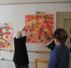10月は、紅葉ドライブ、紅葉の壁飾り作り、職業体験がありました。