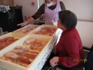 11月の出来事は、避難訓練、パンの日がありました。パンの日はパン屋さんが訪問してくださり、皆様も自分で、好きなパンを購入し、おいしく食べられました。